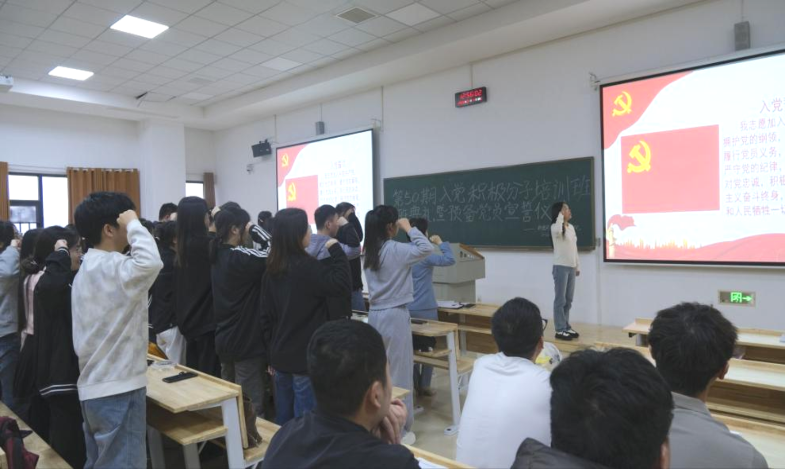 随后,龙睿带领全体预备党员面向党旗庄严宣誓,铿锵有力的誓言彰显了青年学子对党忠诚、勇担使命的坚定决心。宣誓仪式结束后,预备党员有序退场。