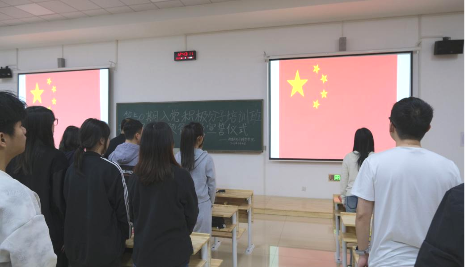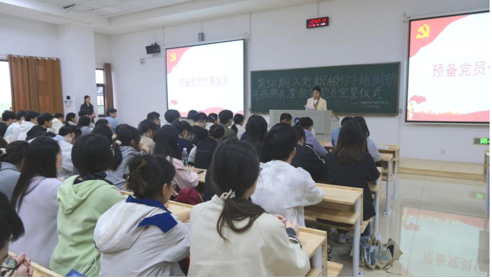 随后,龙睿带领全体预备党员面向党旗庄严宣誓,铿锵有力的誓言彰显了青年学子对党忠诚、勇担使命的坚定决心。宣誓仪式结束后,预备党员有序退场。
