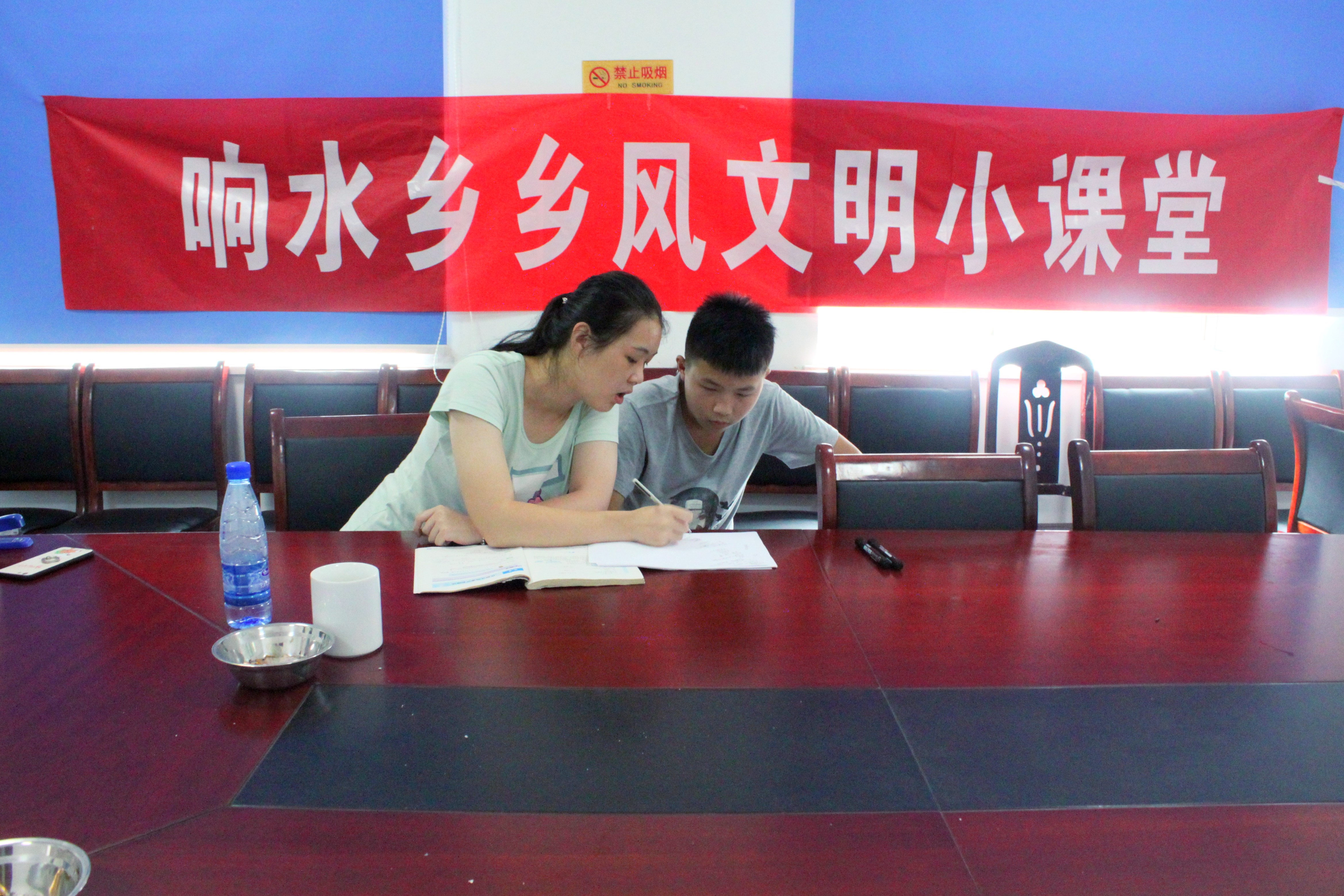 “你们能帮助我的孩子辅导初中物理吗?”一位大妈带着她的孙子来到村支部并说到。14岁的小男孩因为家里离学校有一段路程,家里父母外出无人辅导而导致成绩难以提升。看见志愿者的到来,大妈激动地领着自己的孙子来辅导功课。志愿者们热情引导,详细解答,帮助小男孩勾画书中的重点与难点,对小男孩提出的问题做解答并能举一反三,把整本书的知识点融会贯通。村民们在旁无不竖起大拇指。那些羞怯的、后知后觉的孩子们纷纷回家拿上暑假作业本、书本,缠着这些可爱的哥哥姐姐要求讲解。大妈欣慰的对志愿者们说:“孩子平常内向不肯说话,没人旅游给他辅导功课,现在好了你们来了,我的孩子成绩肯定能有所提升的。”可能在这就是大妈对她孩子最大的愿望吧,好好学习能走出农村,做对社会有贡献的人。