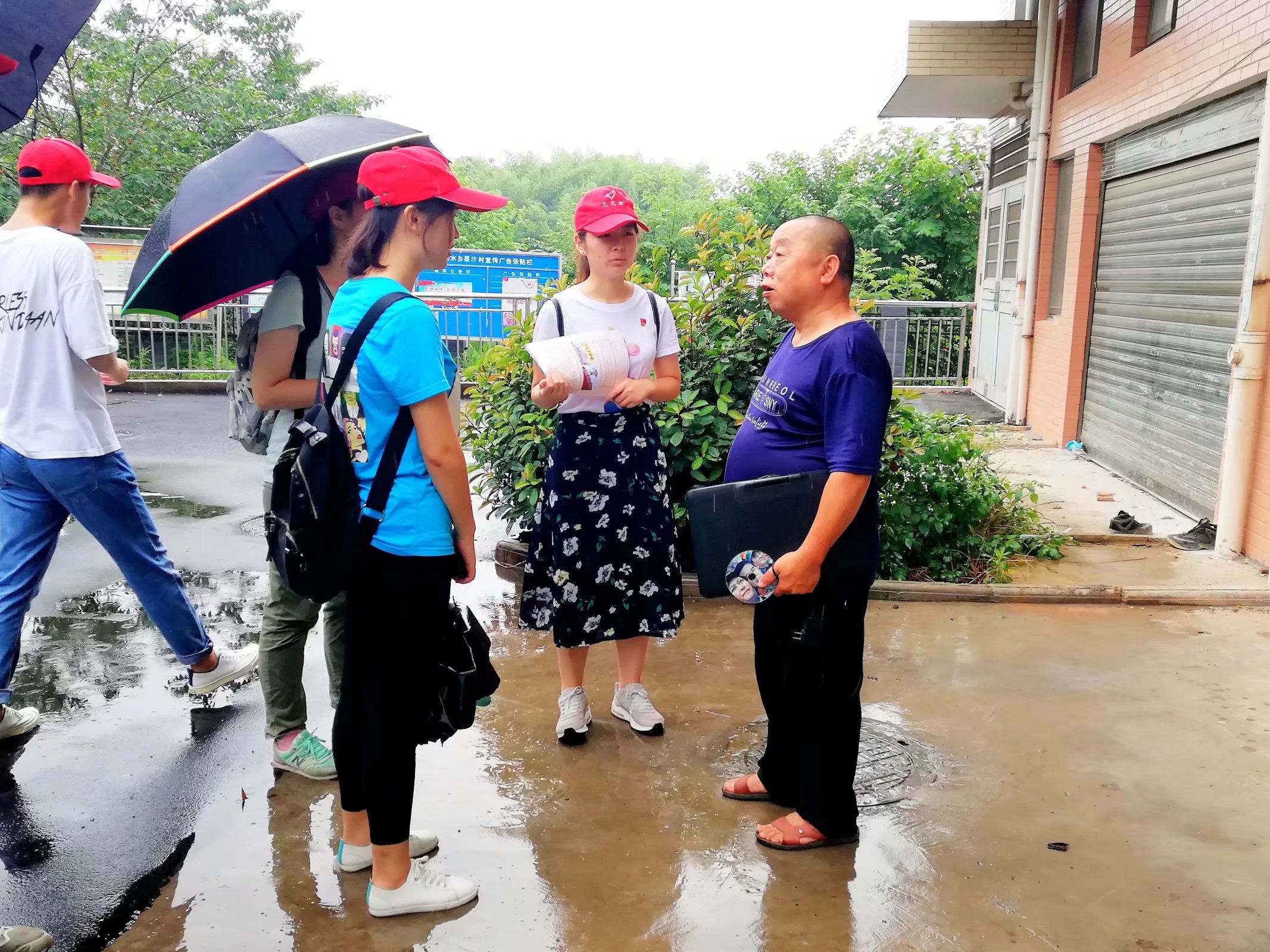 刚下车,志愿者们便到星沙村每家每户宣传十九大精神。“毛主席是我们湖南湘潭人啊,他为我们湖南省为中国做了不少贡献,他是中国各族人民的伟大领袖。”一位年迈的爷爷,听到了我们的宣传趋步过来说到,并在绵绵细雨中爷爷激动地握住志愿者张煜翀的双手,和志愿者讲述着历史革命家的丰功伟绩。志愿者团队离开时,爷爷依旧不舍放开志愿者双手,反复感谢“三下乡”志愿者们并说“你们把共产党的精神带到了我们村来,你们都是好孩子,要好好读书成为国家的栋梁呀”。